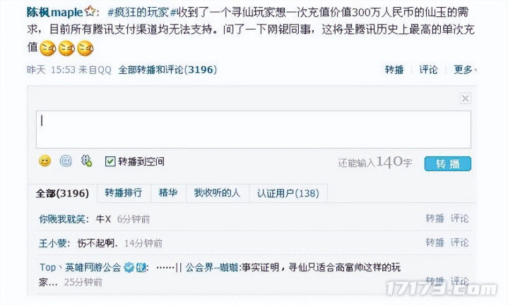 (腾讯史上最高单笔300万的充值记录便诞生于《寻仙》)